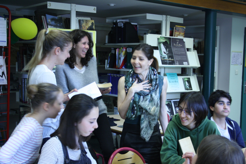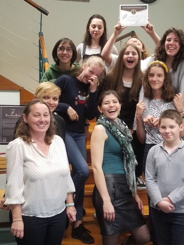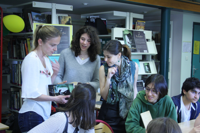 Voici quelques photos de la remise de prix ainsi que de la rencontre des élèves avec l’auteure, E. Loisel. Ce fut un très bon moment.
